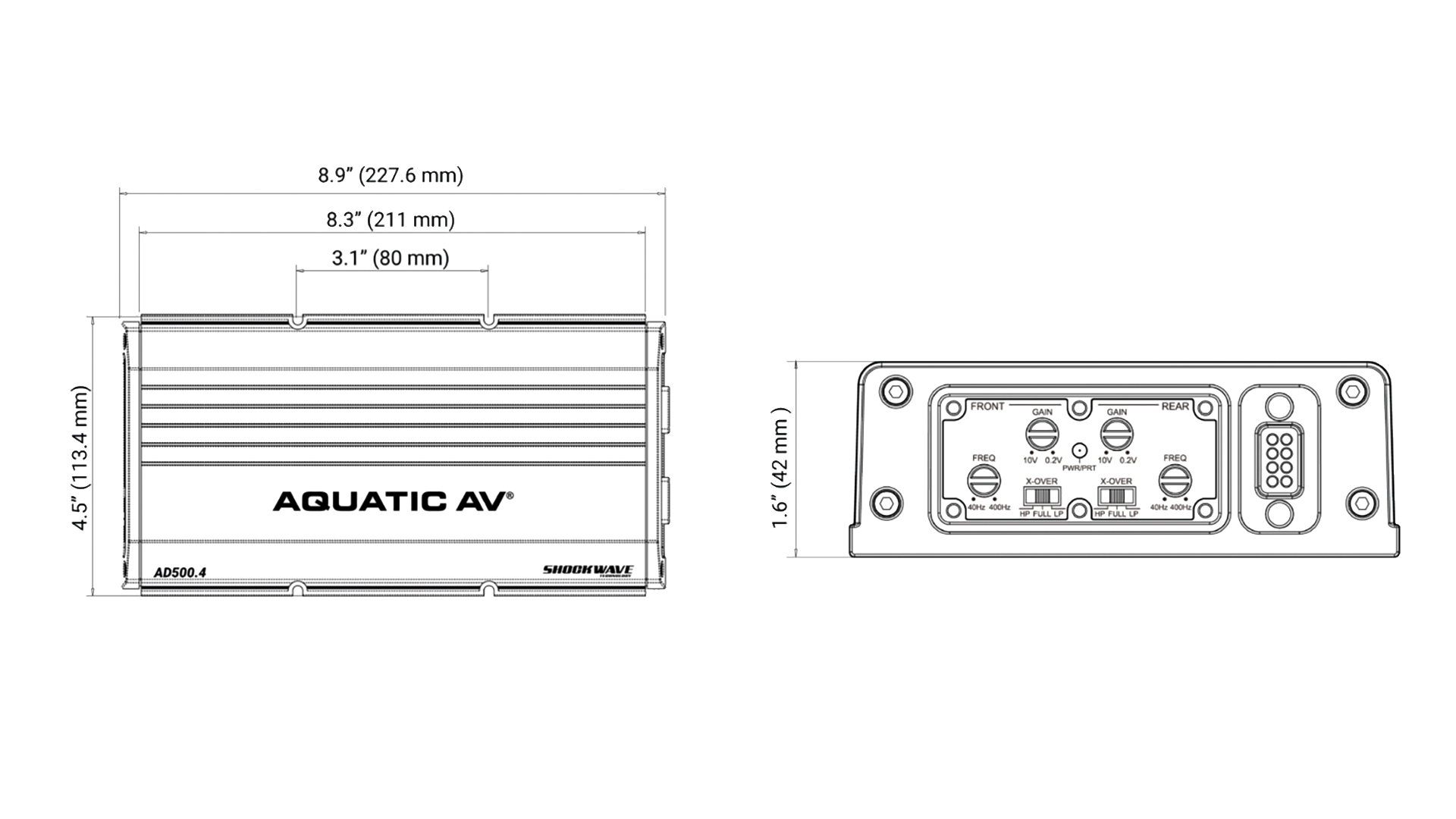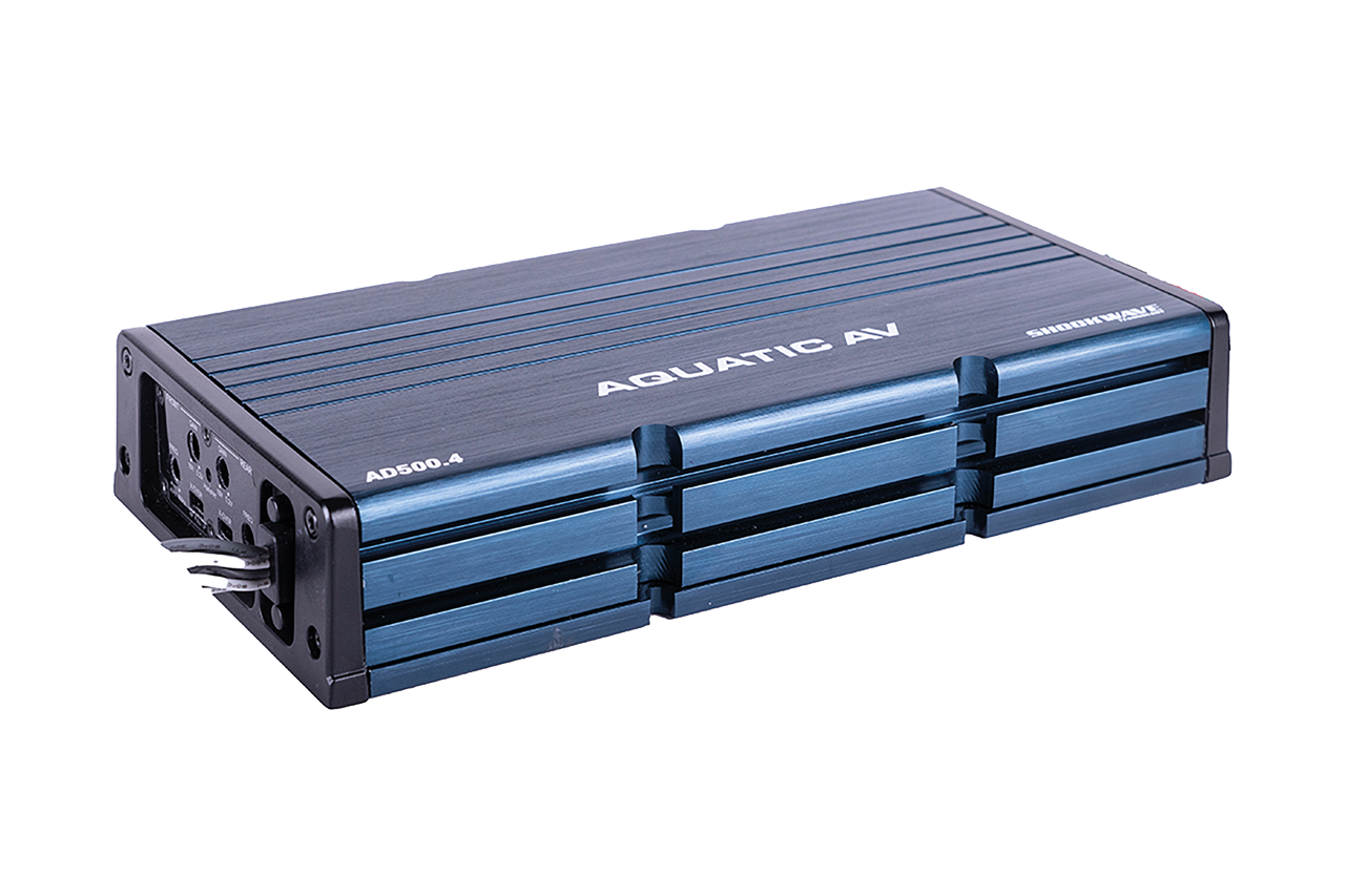 L’amplificatore AD500.4 è stabile a 2 ohm, ma può essere usato anche con altoparlanti da 4 ohm ed è una scelta perfetta per le applicazioni marine. Per garantire un miglior suono, raccomandiamo di accoppiarlo con gli altoparlanti stagni di Aquatic AV.