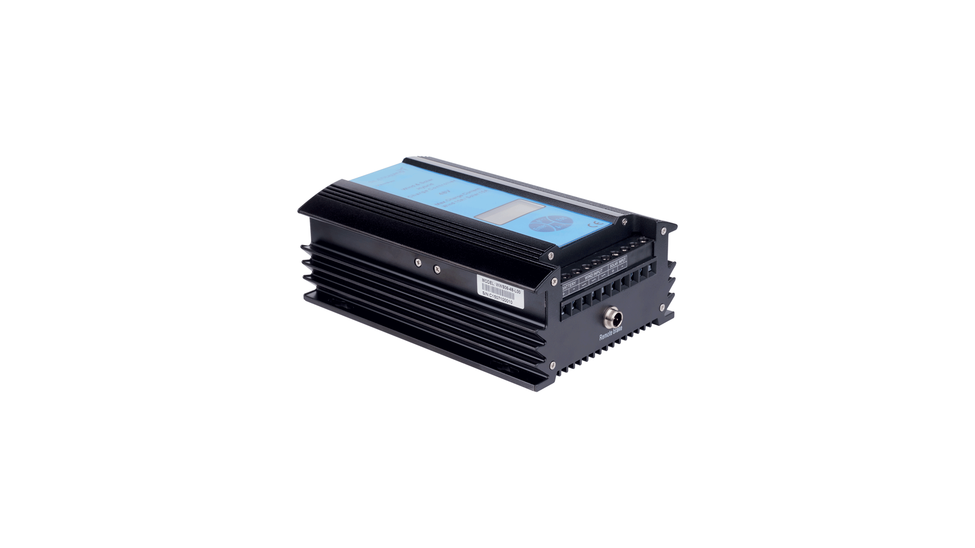 – Fornito con un regolatore di carica ibrido esterno ( eolico – solare ) con display LCD