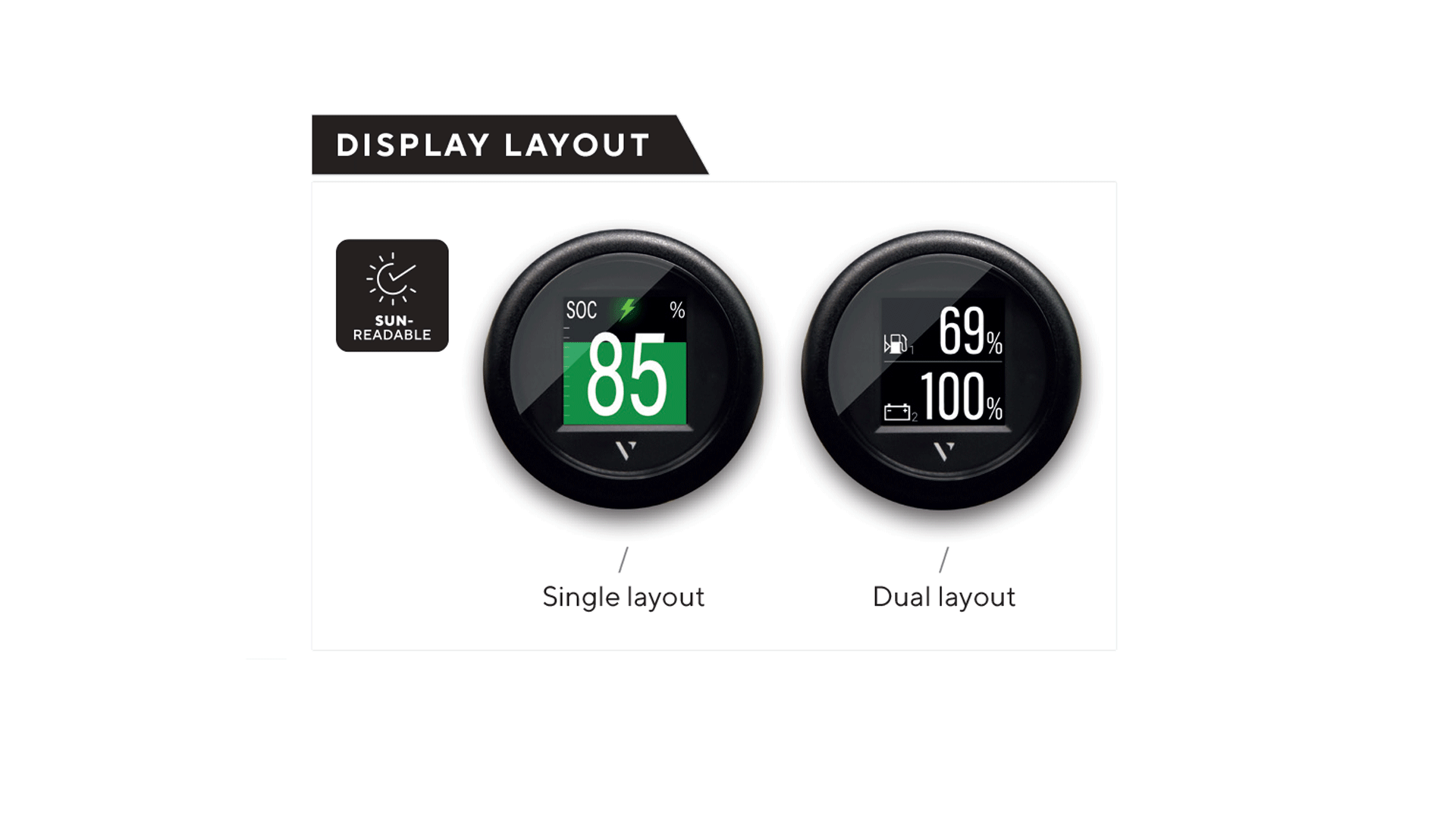 VL Flex può essere facilmente configurato per essere lo strumento di cui avete bisogno, – grazie al display TFT a colori da 1.44″ TFT , perfettamente visibile alla luce del sole, integrato in un involucro da 52 mm.