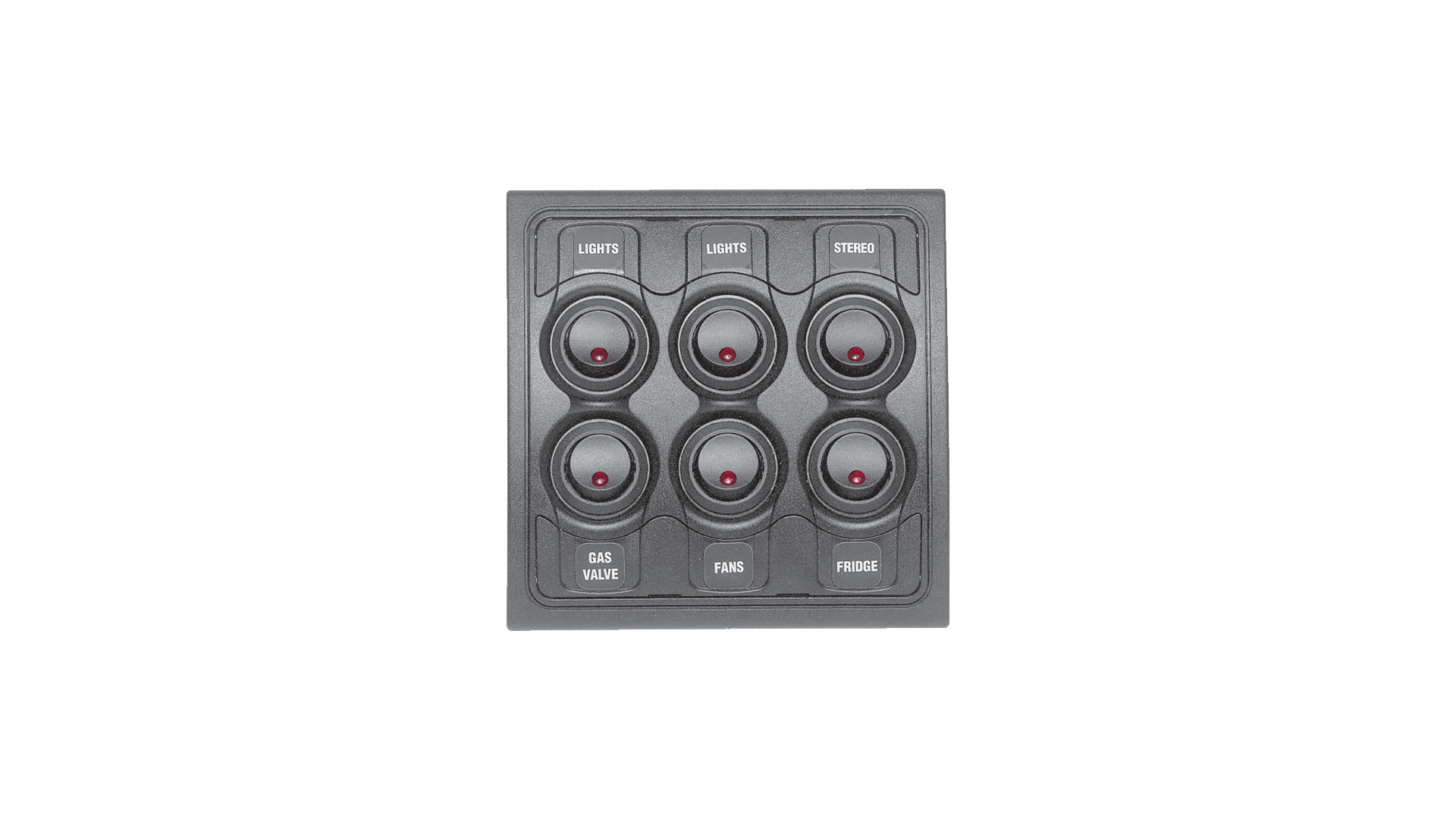 | 1000-6W-12V | 64379S | 6 switches, 6 fuses, 12V DC |