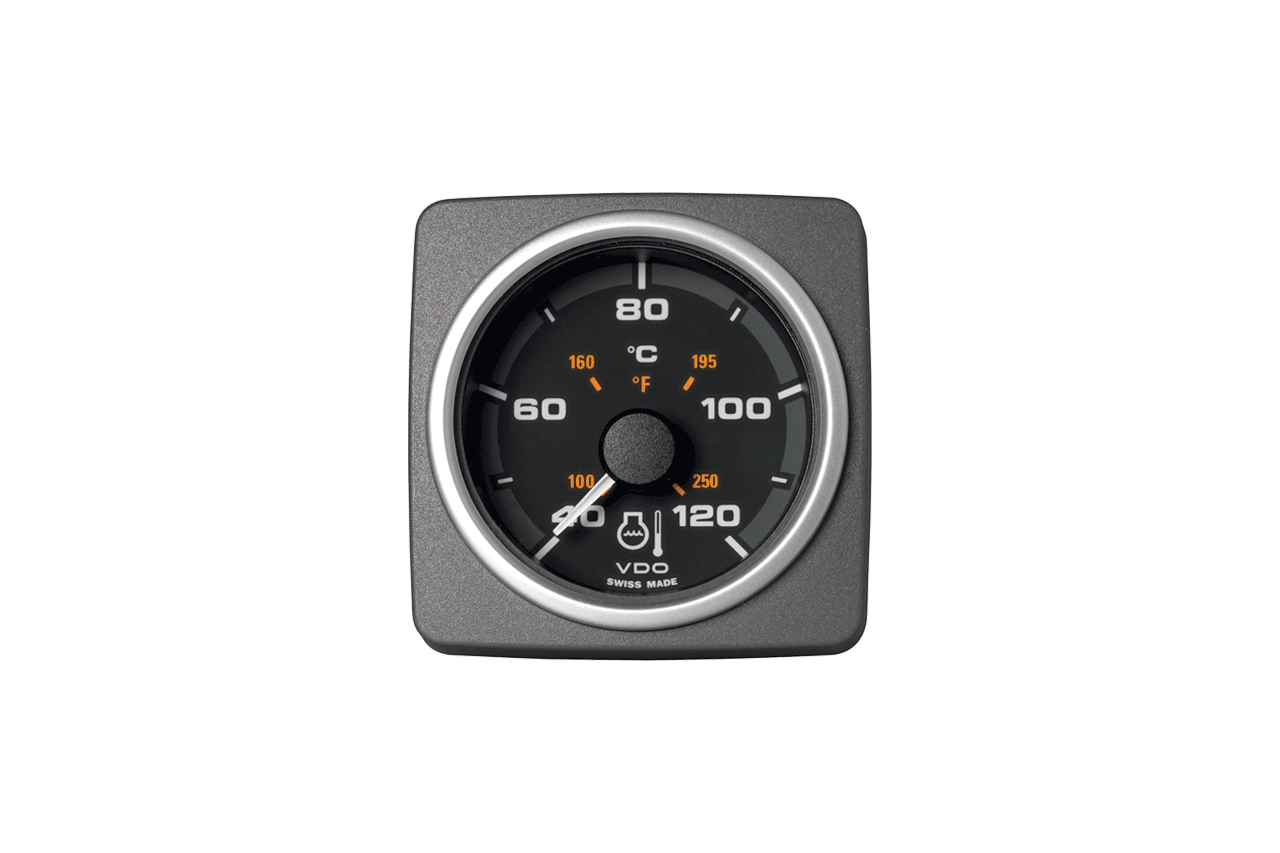 Acqualink temperature gauges connect to any 110 mm Acqualink tachometers with Easylink serial bus communication protocol