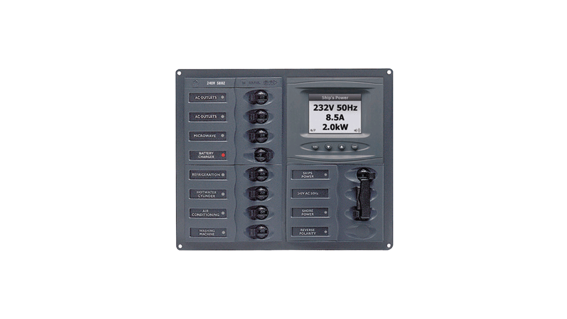| 900-ACM6V-AM | 20862X | 6 loads + 1 input AC main circuit breaker panel 230V w/analog meter |