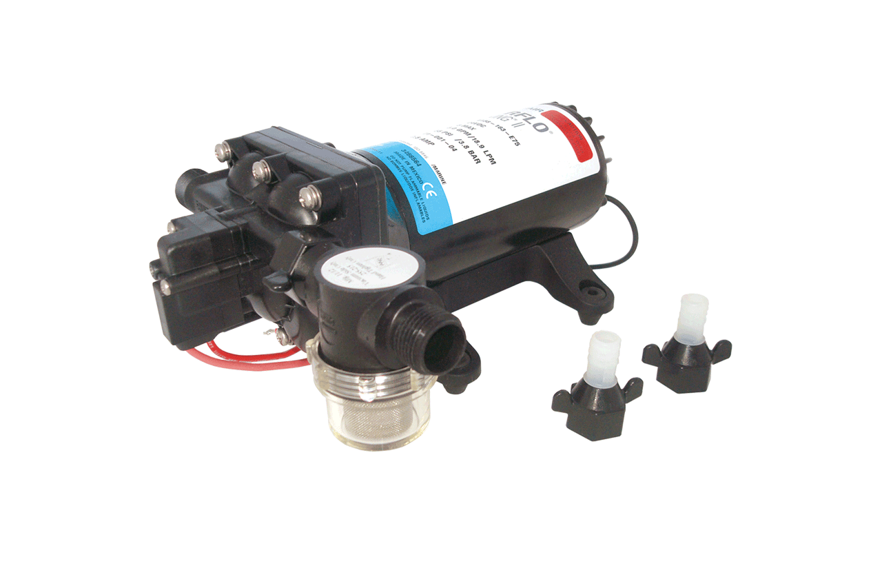 The Aqua King™ II Supreme Series 5.0 fresh water pump design was created with unique over-molded single-piece diaphragm and internal by-pass, assuring long life and top performance in all plumbing systems. These pumps are constructed for high flow demand, smooth flow and no rapid cycling. The Series 5.0 fresh water automatic demand pumps are quiet, thermally protected and can run dry without damage.