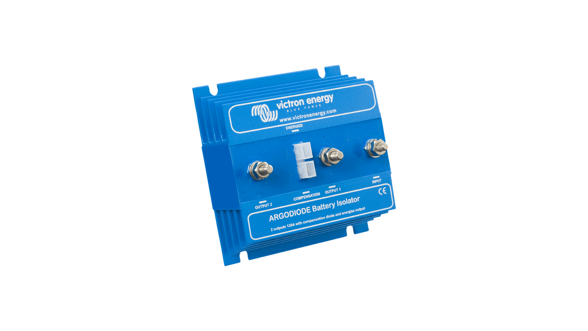 The Argo battery isolators feature a low voltage drops thanks to the use of Schottky diodes: at low current the voltage drop is approximately 0,3V and at the rated output approximately 0,45 V. All models are fitted with a compensation diode that can be used to slightly increase the output voltage of the alternator. This compensates for the voltage drop over the diodes in the isolator.