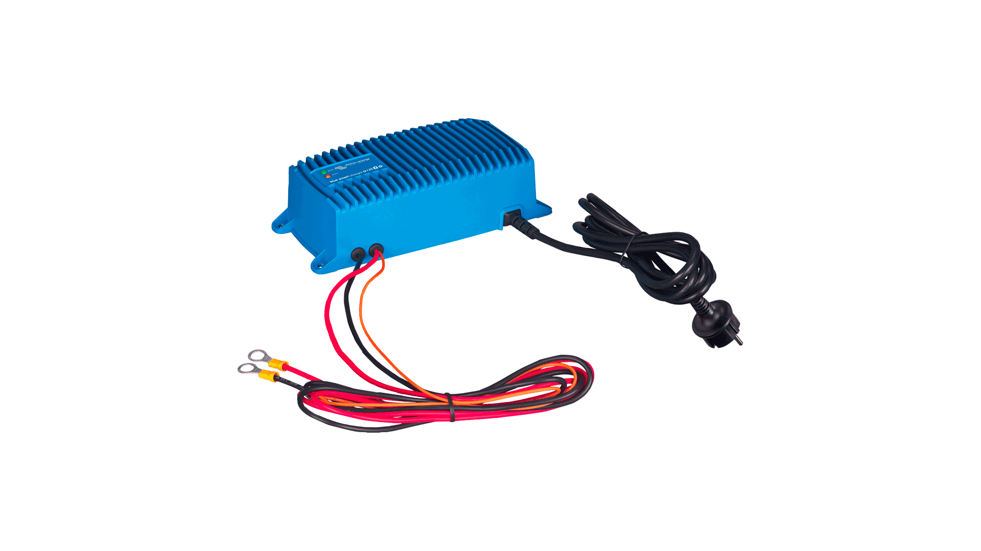 • Completely encapsulated body. Water, oil or dirt will not damage the Blue Power IP67 charger. The casing is made of cast aluminium and the electronics are moulded in resin.
