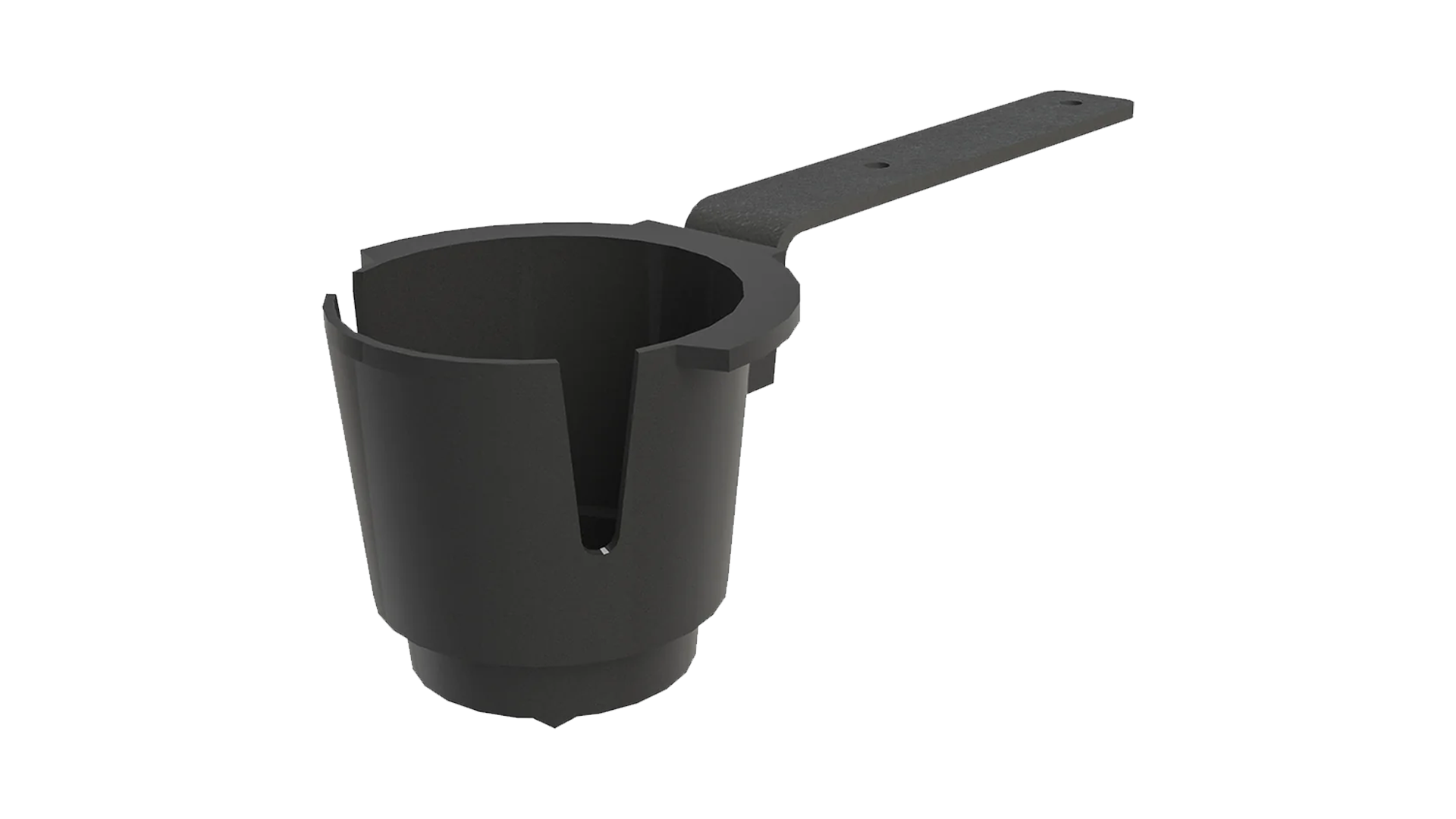 An optional cupholder is available for the SHOCKWAVE Commander Seat. It can be attached to either side of the armrest with a black aluminum bracket.