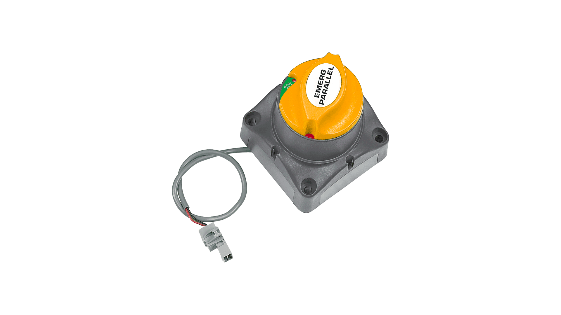 • Remote emergency parallel function 701-MDVS and 720-MDVSO can be operated through a momentary button on the dash which will parallel the batteries for a present time of 10 minutes. Once this 10 minutes has passed, if the voltage is up high enough for the voltage sensitive switch to operate, it will stay engaged. If not, it will discharge.