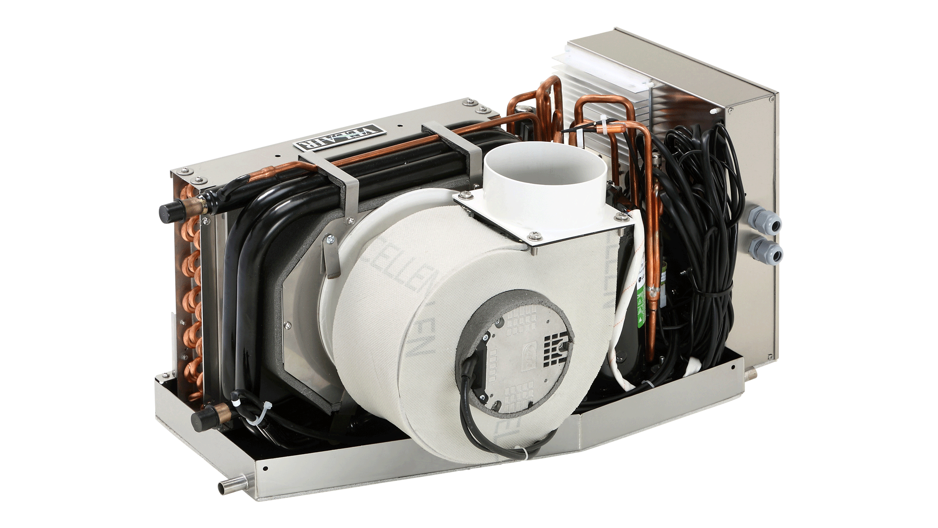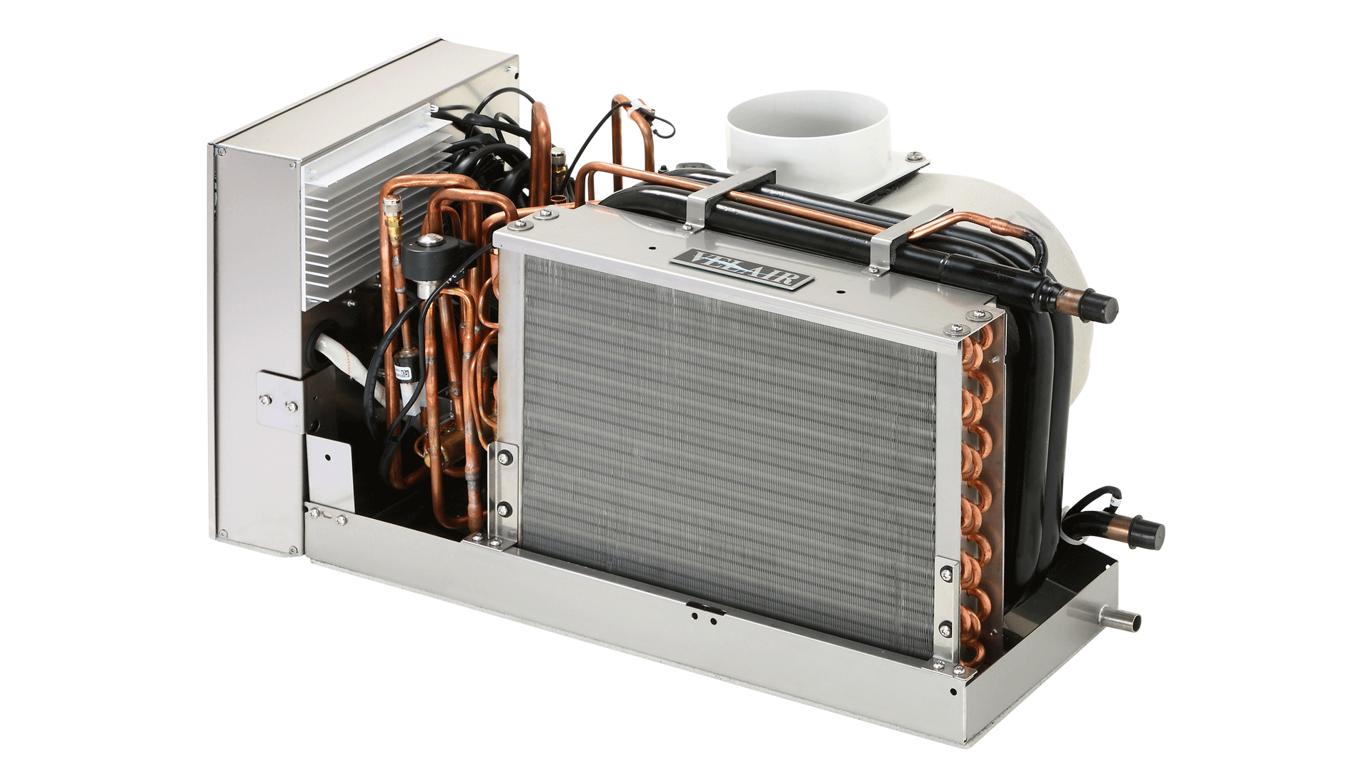 Velair i16 VSD SMART Self-contained-VSD air conditioner provides the best of the existing technology: compressor with brushless DC motor and inverter that constantly controls speed and delivered cooling power (Variable Speed Drive); reverse blade brushless fan; electronic expansion valve; R32 refrigerant.