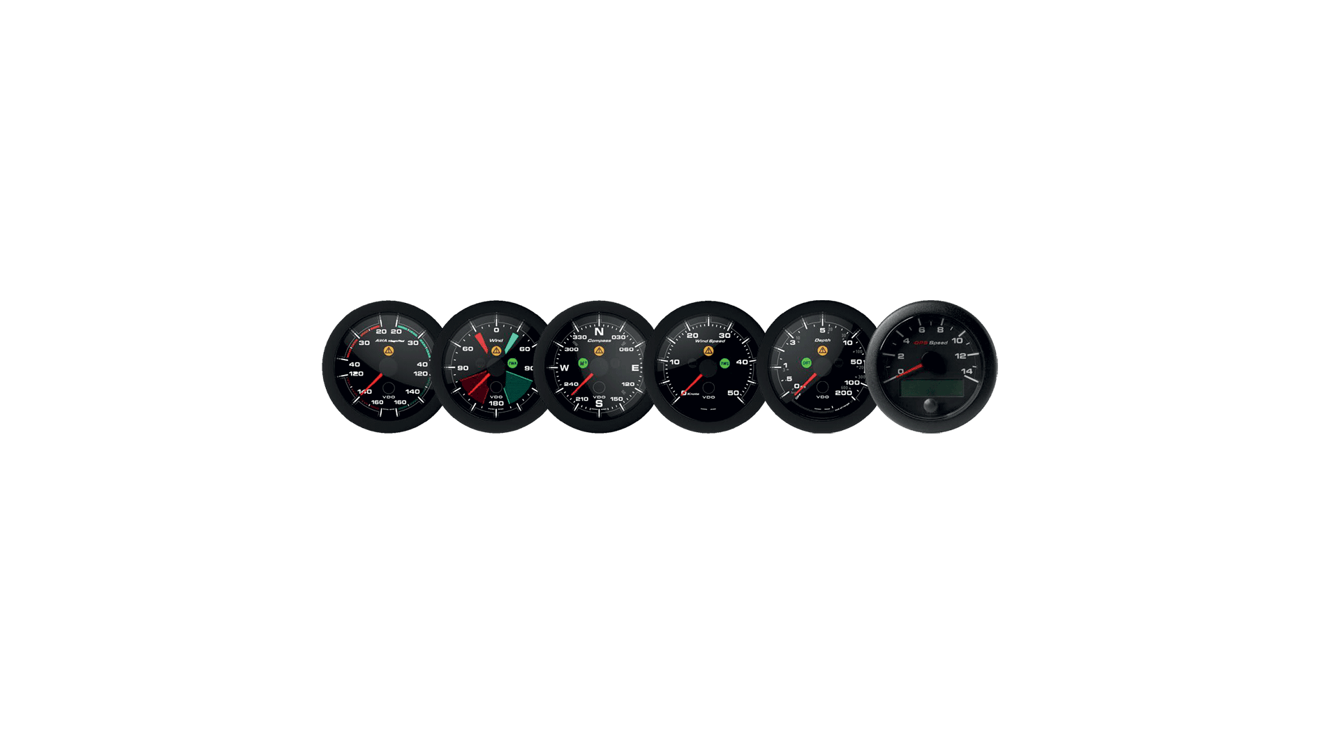 Displayed Data: Compass / Wind angle / Apparent wind angle with larger reading / Wind speed / Depth