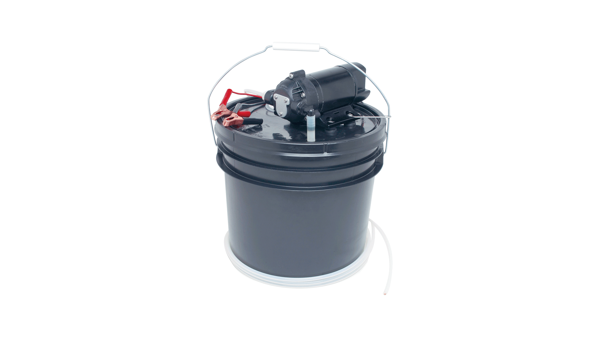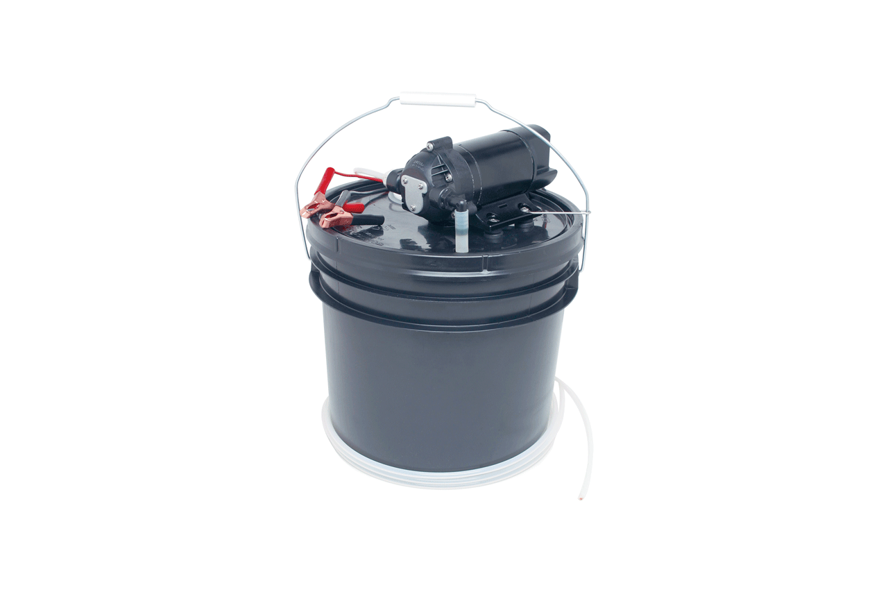 • 13 litres (3,5 gal) storage container – 2,4 m (8’) cable with battery clips and hose kit included