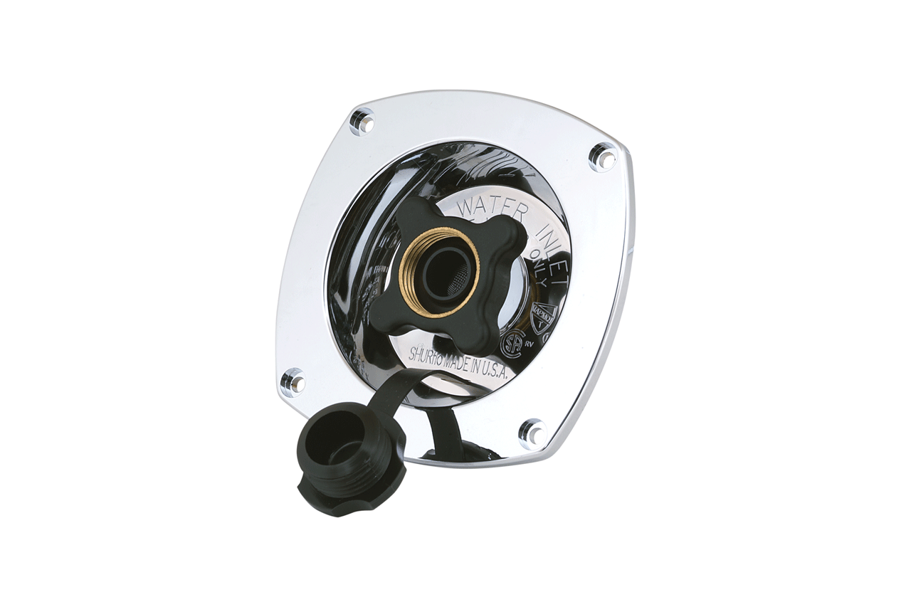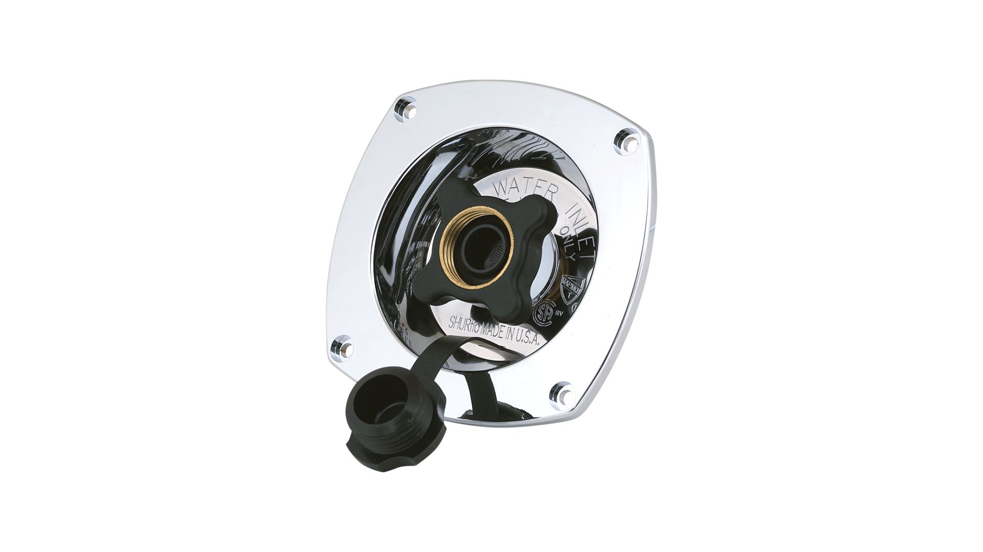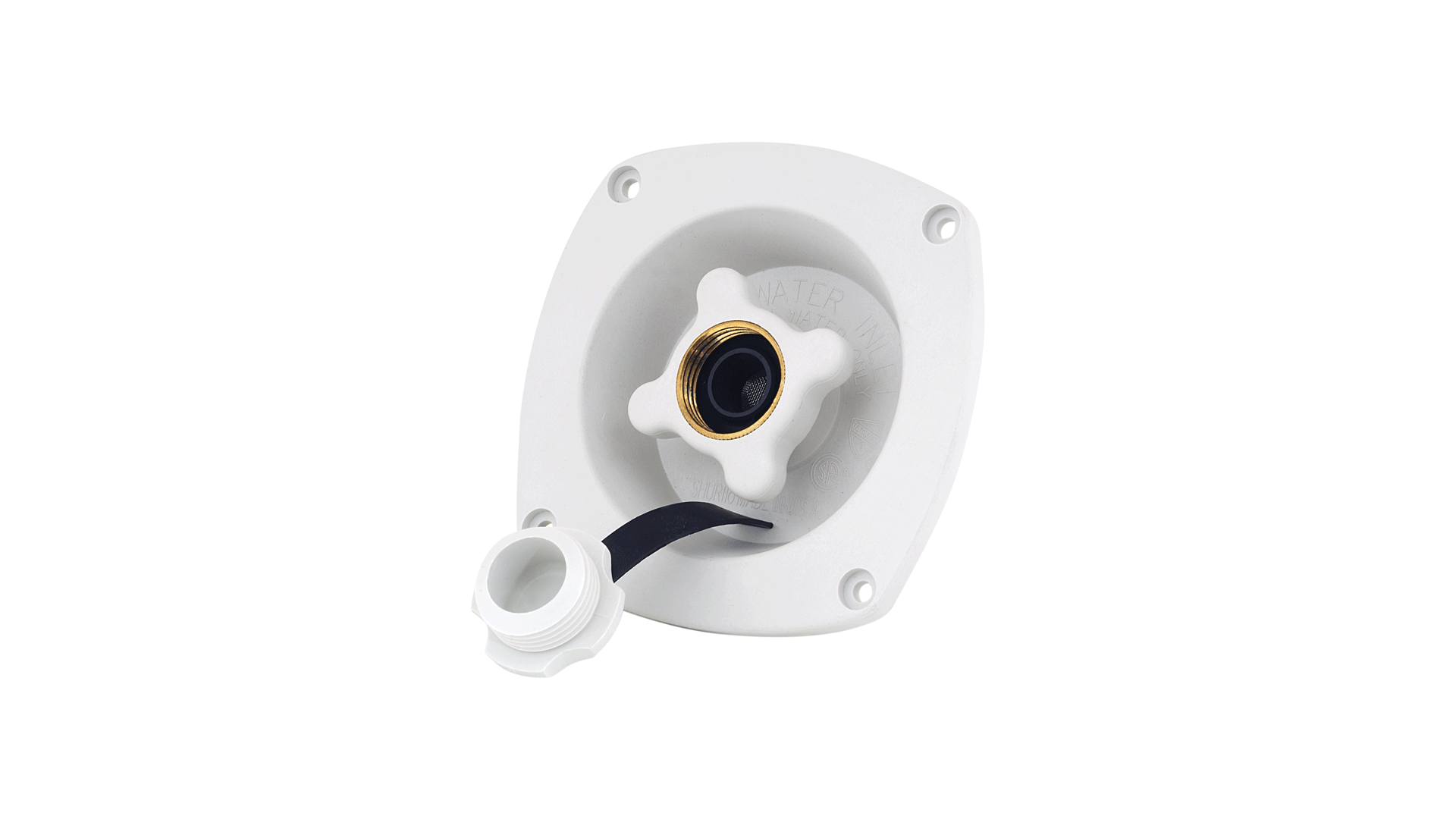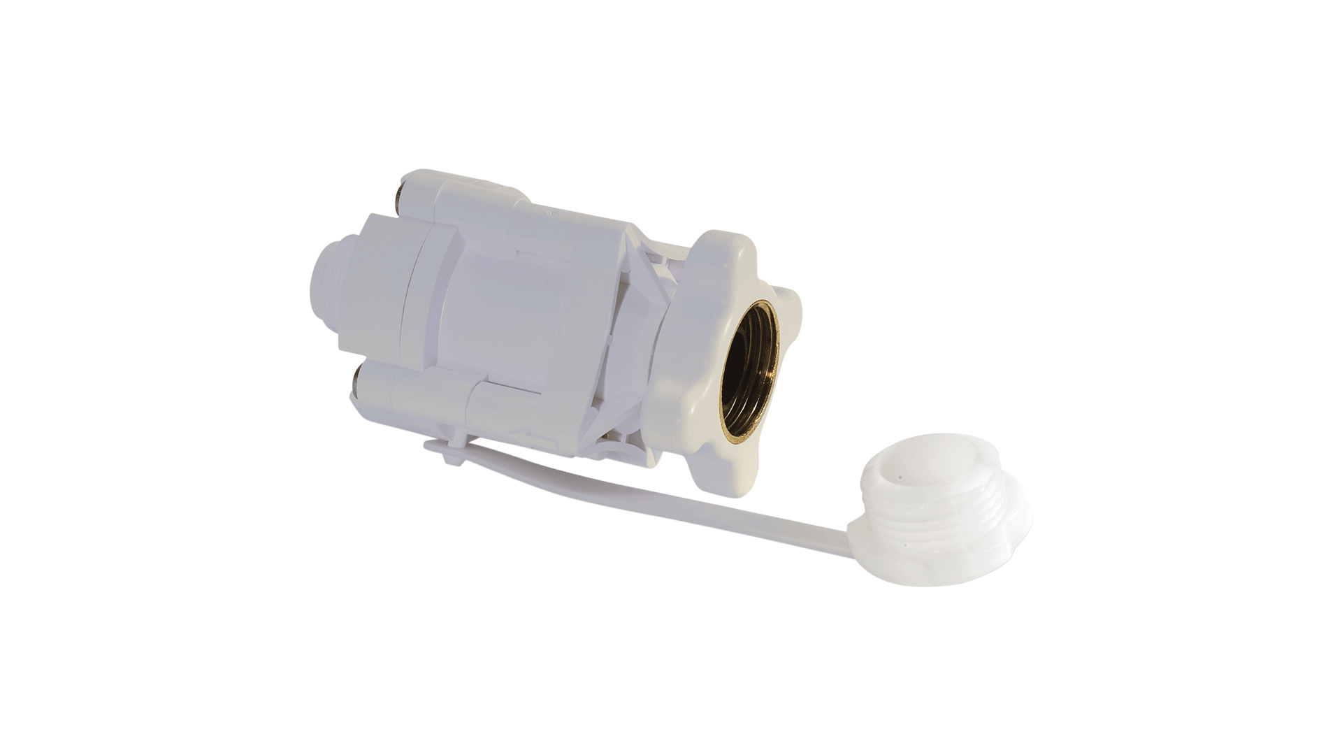 An exclusive diaphragm design prevents high-pressure damage often caused by city water systems. Leak-tight, stress and crack-resistant, these high-performance water entries limit water pressure safely to 50 or 65 PSI (3.5 or 4.5 Bar) while meeting or surpassing all check valve code requirements. Male outlet ½” swivel elbow fitting included