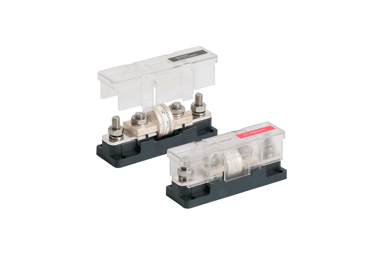 Class-T fusing provide high-capacity fusing, with very fast response and very high interrupt ratings (Class-T 20.000 A ). These fuse holders are ideal for protecting today’s demanding on board power electronics technology including inverters and battery chargers. They also protect wiring from short circuits, for example as a main fuse to protect house circuits, where modern battery technologies such as Lithium Ion and AGM, are capable of producing very high short circuit currents