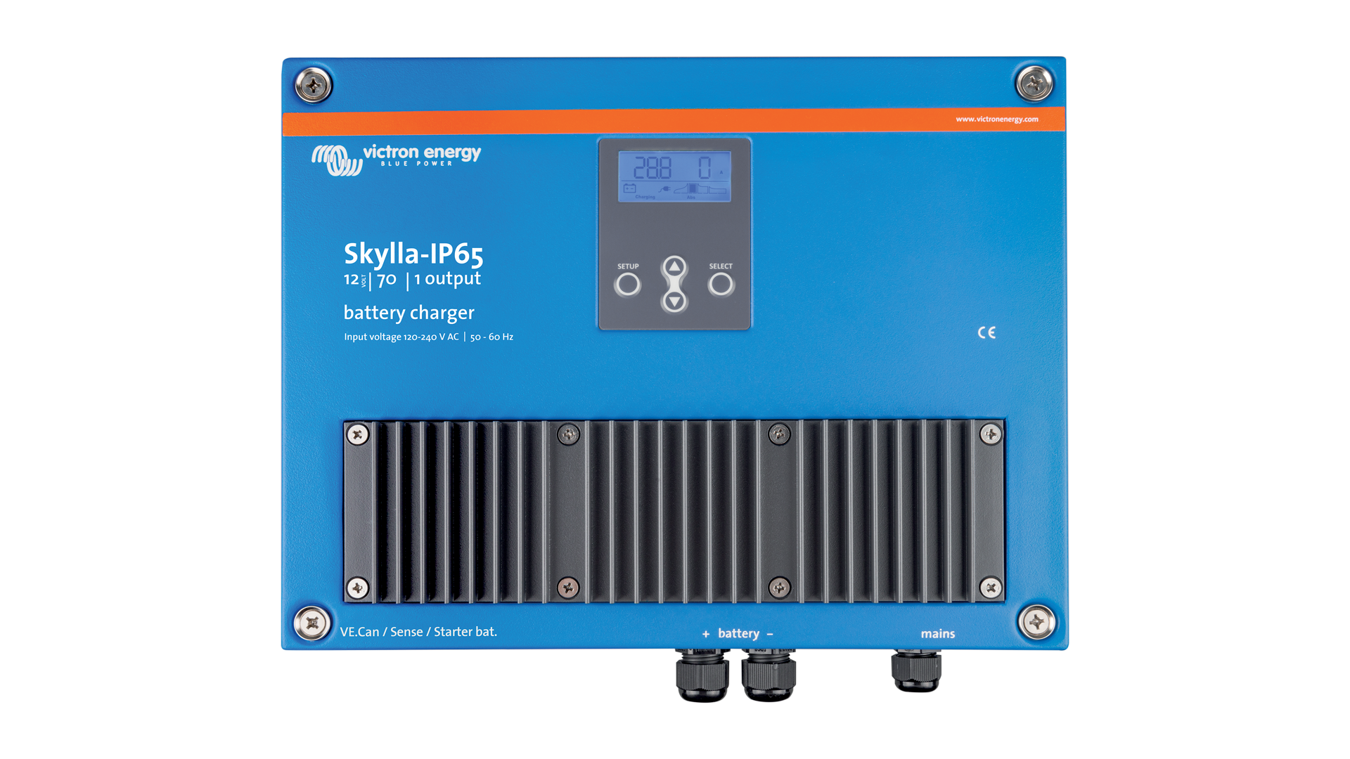 Skylla-IP65 (1+1): two outputs to charge 2 battery banks The Skylla-IP65 (1+1) features 2 isolated outputs. The second output, limited to approximately 3A and with a slightly lower output voltage, is intended to top up a starter battery.