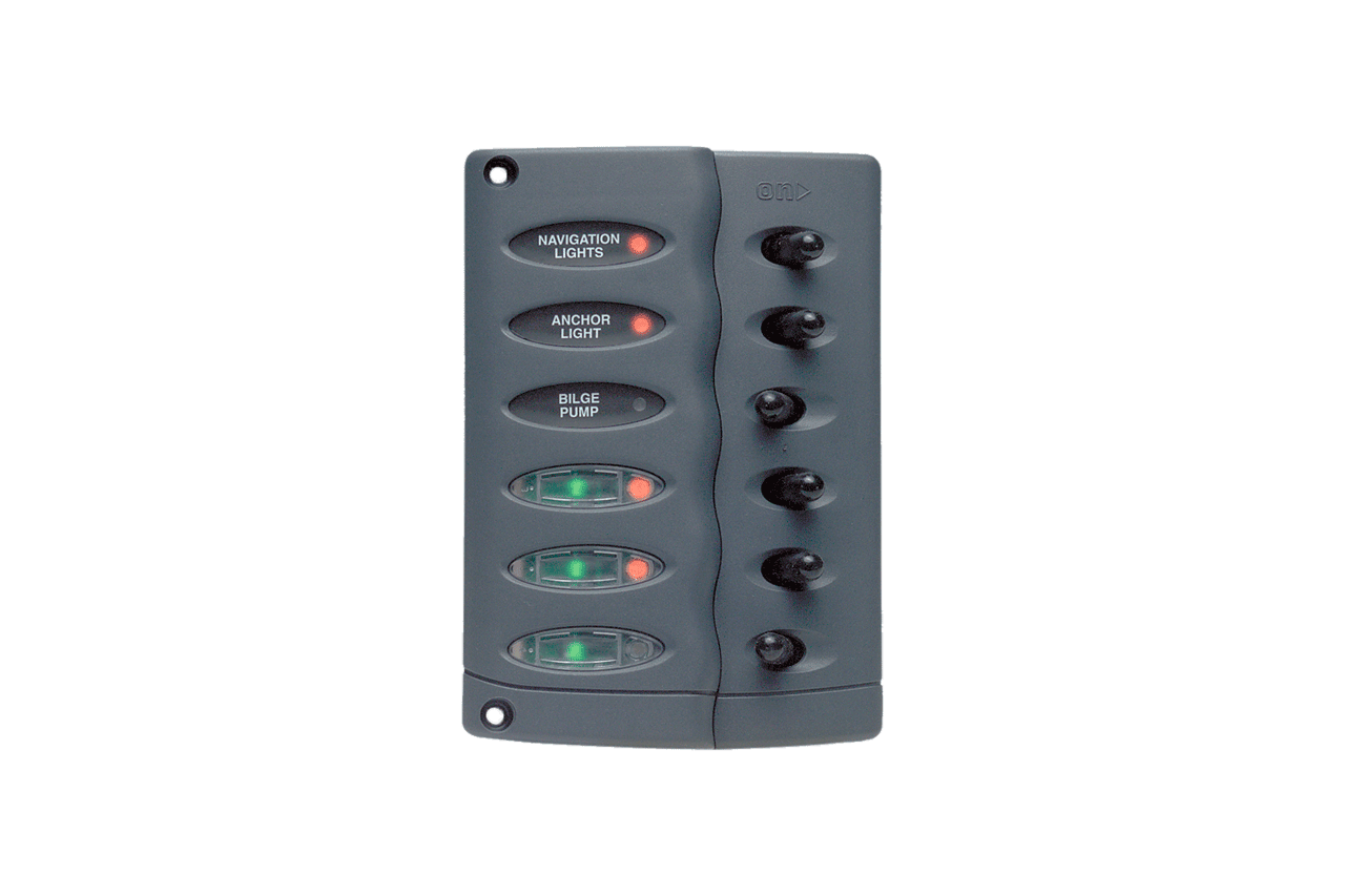 CSP6-F Includes six switches and 3 WAFH14 fuse holders with fuses behind panel.