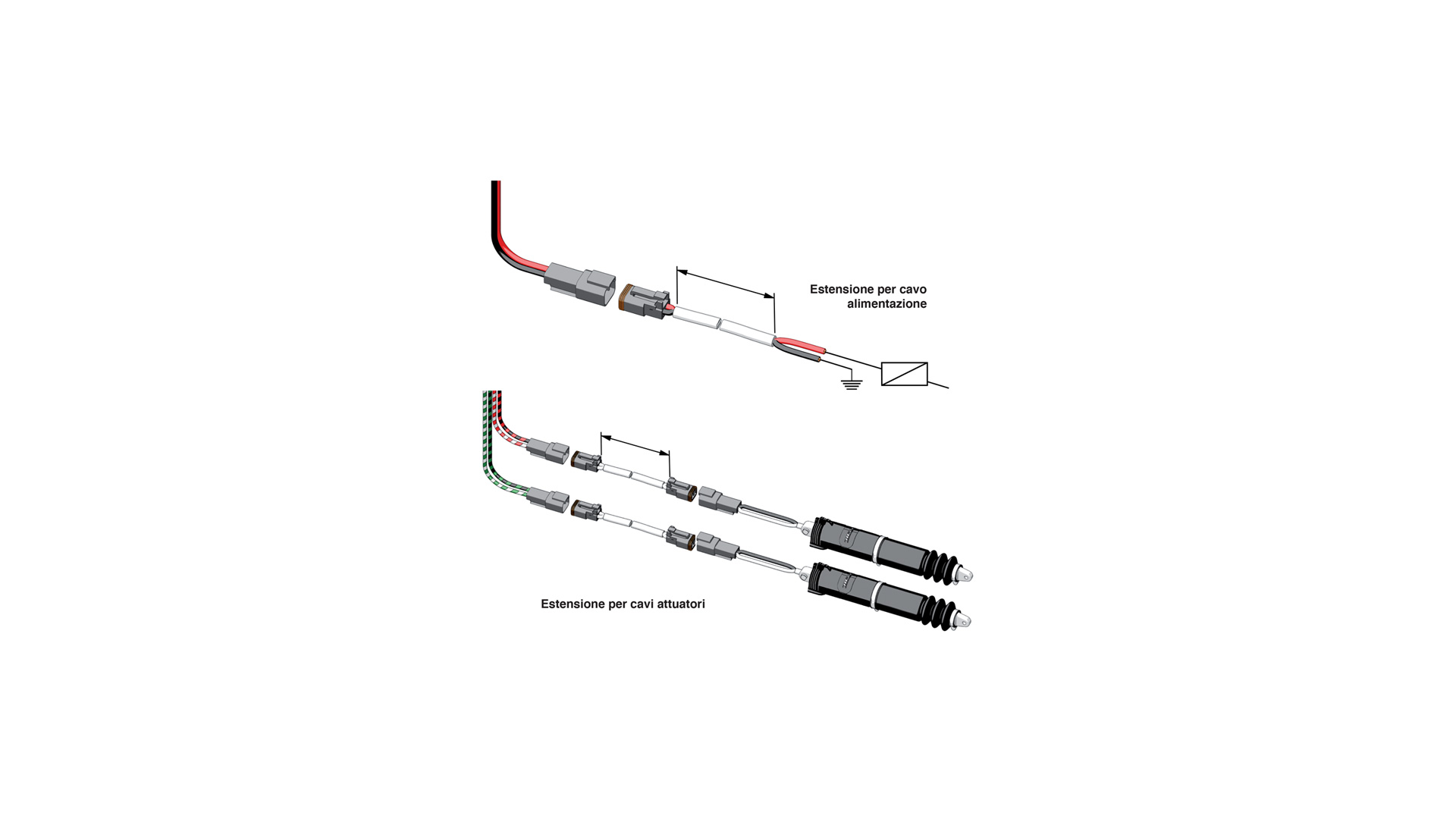 | KE20 | 42378R | one 16.4’ (5,0 m) length wiring harness extension for the power cable and two 19.7’ (6,0 m) length wiring harness extensions for the actuator cables. Deutsch plugs included. |